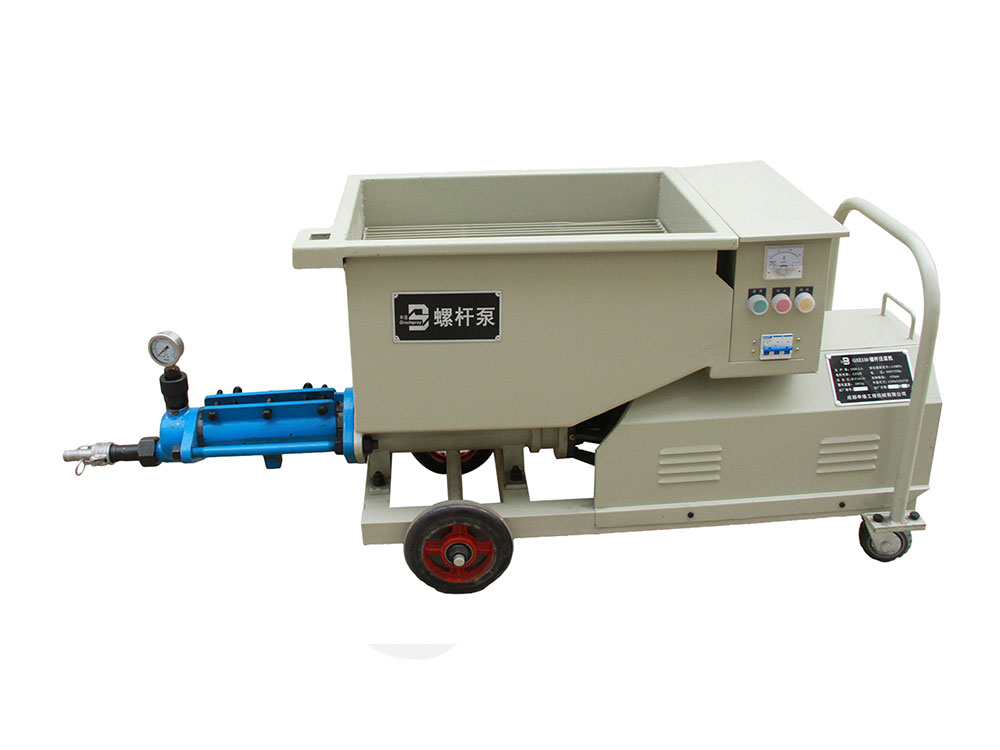 該泵結(jié)構(gòu)新穎、構(gòu)思獨(dú)特;避免了灌注稠漿較困難的不足,使用安全方便、效率高。本機(jī)主要由電機(jī)、減速器、增壓蝸桿、增壓定子、測(cè)壓裝置、料斗、電控系統(tǒng)等組成,當(dāng)用于噴護(hù)時(shí),還包括噴射器,其特點(diǎn)如下: